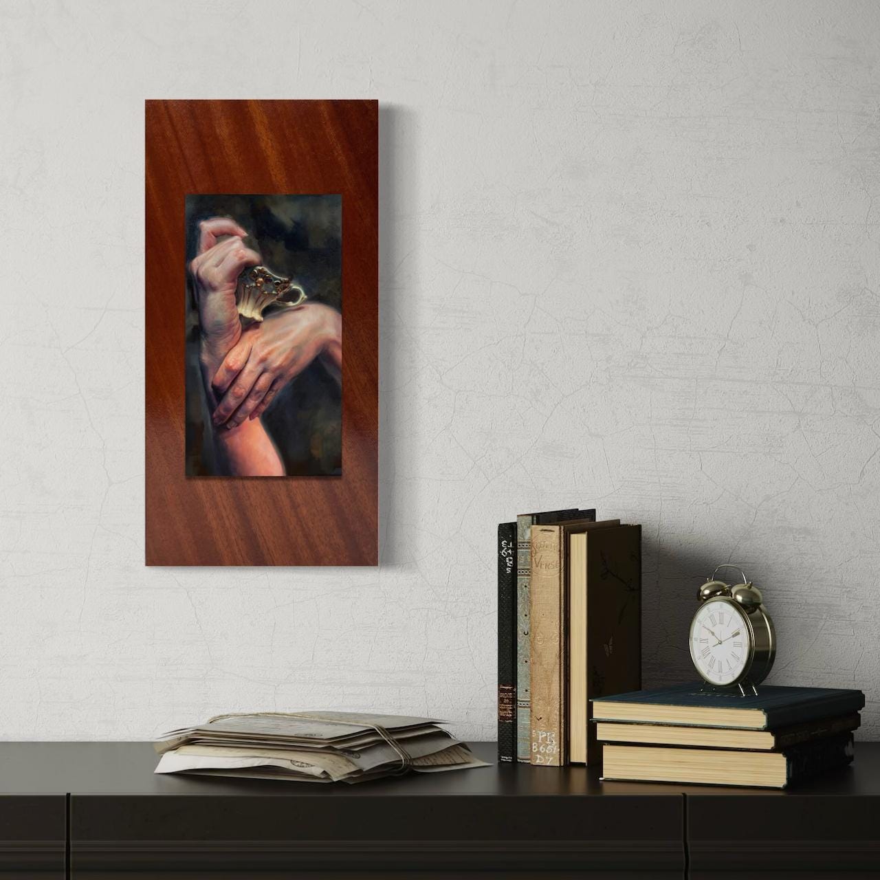 Because of the materials used, I recommend framing the work if you plan to display it in an area that may be hot or humid—such as a bathroom. Although the piece is varnished and sealed, prolonged exposure to moisture can cause the wood to warp. To preserve the richness of the colors, please also avoid hanging it in direct sunlight.